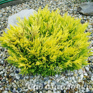 Стелющийся декоративный кустарник. Растет довольно медленно, достигая 0,4 м в высоту и 1,5-2 м в диаметре. Хвоя интенсивно золотисто-жёлтая летом и коричнево-жёлтая зимой.