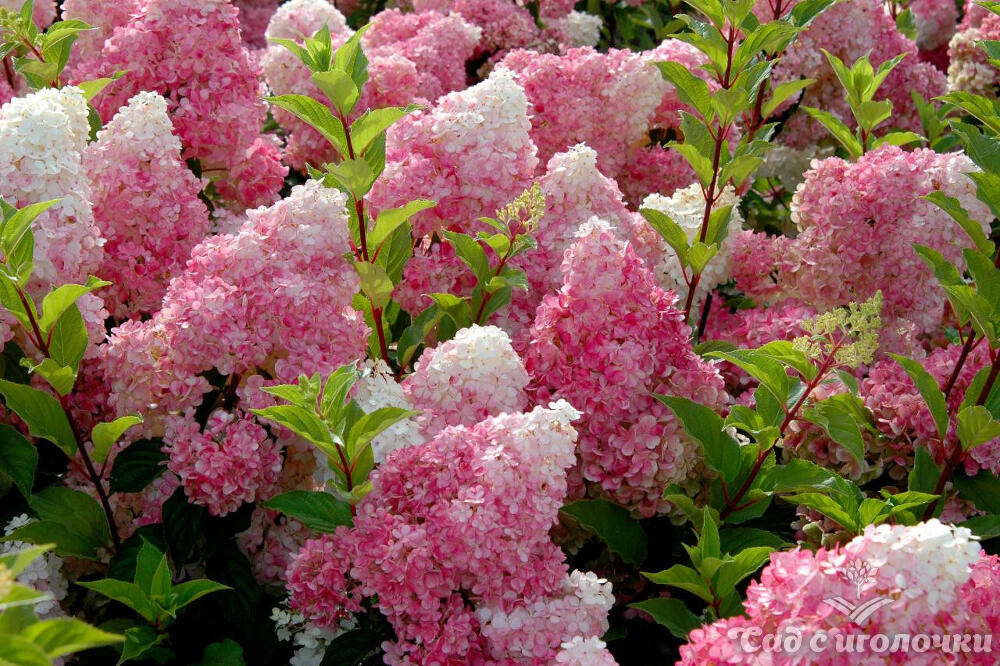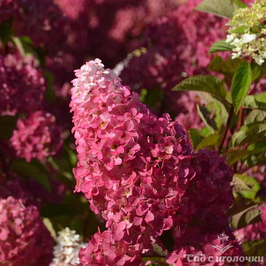 Этот сорт не останется незамеченным в вашем саду: высокий (до 2 м) куст покрыт огромными пирамидальными соцветиями от 30 до 55 см в длину. Цветки сначала белые, позже приобретают малиновый оттенок. Одна из самых красных горензий!